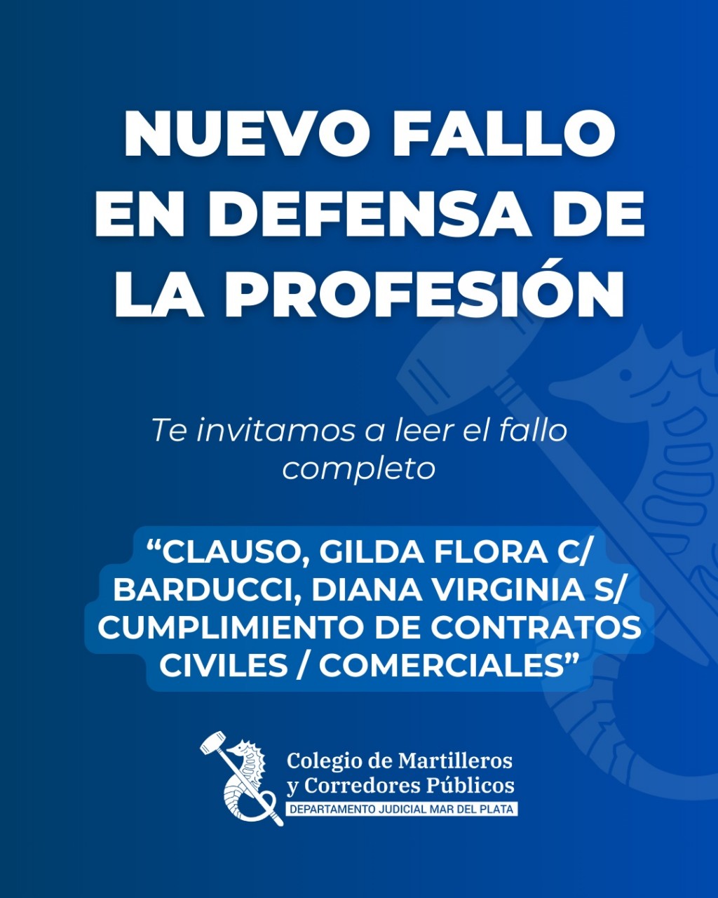 El fallo completo es el siguiente: https://www.martillerosmdp.com.ar/web/wp-content/uploads/2025/04/Expte.-No-182042-Juzgado-Civil-y-Comercial-N°13-CLAUSO-GILDA-FLORA-C-BARDUCCI-DIANA-VIRGINIA-S-CUMPLIMIENTO-DE-CONTRATOS-CIVILES-COMERCIALES.pdf
