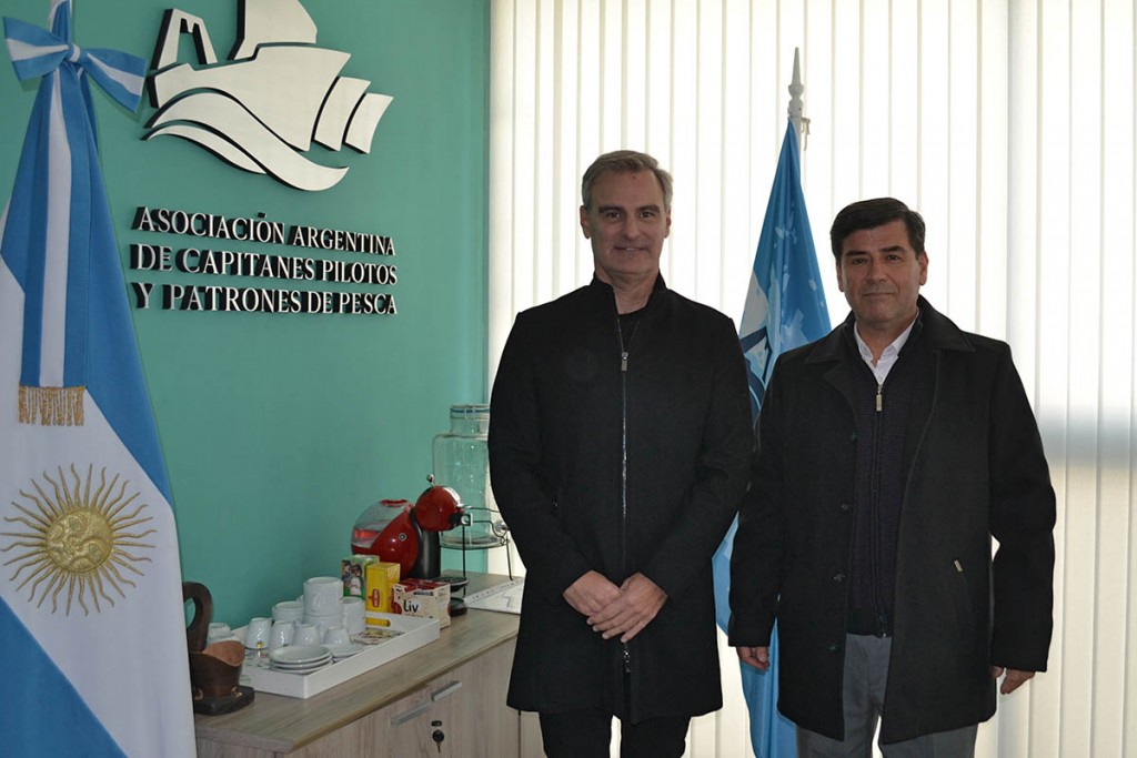 El Secretario General de la Asociación Argentina de Capitanes, Pilotos y Patrones de Pesca, Jorge Frías, recibió en la sede de la Ciudad Autónoma de Buenos Aires al apoderado de la Cámara Argentina Patagónica de Industrias Pesqueras Dr. Diego González Lernoud. En el transcurso del encuentro firmaron acuerdos salariales para los representados por el gremio, los que incluyen proporcionales por producción.