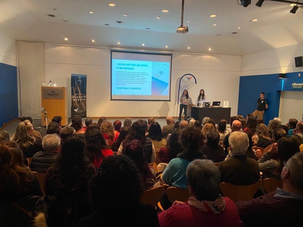Con un auditorio repleto de personas relacionadas a la actividad turística, este miércoles se llevó a cabo la charla “De la lente al océano, fotos que revelan historias de ballenas” la cual estuvo a cargo del Instituto de Conservación de Ballenas (ICB) y fue coordinada por la Secretaría de Turismo de la Municipalidad de Puerto Madryn junto al Ente Mixto de Promoción Turística y el Ecocentro Pampa Azul.
