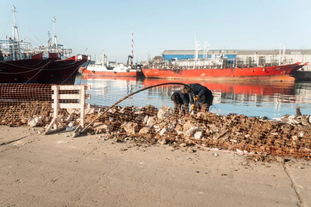 Los trabajos alcanzan renovación de superficie de hormigón y redes de abastecimiento de agua potable, incendio y desagües en Terminal 3. La inversión es de casi 100 millones de pesos con recursos del Consorcio Portuario Regional Mar del Plata.