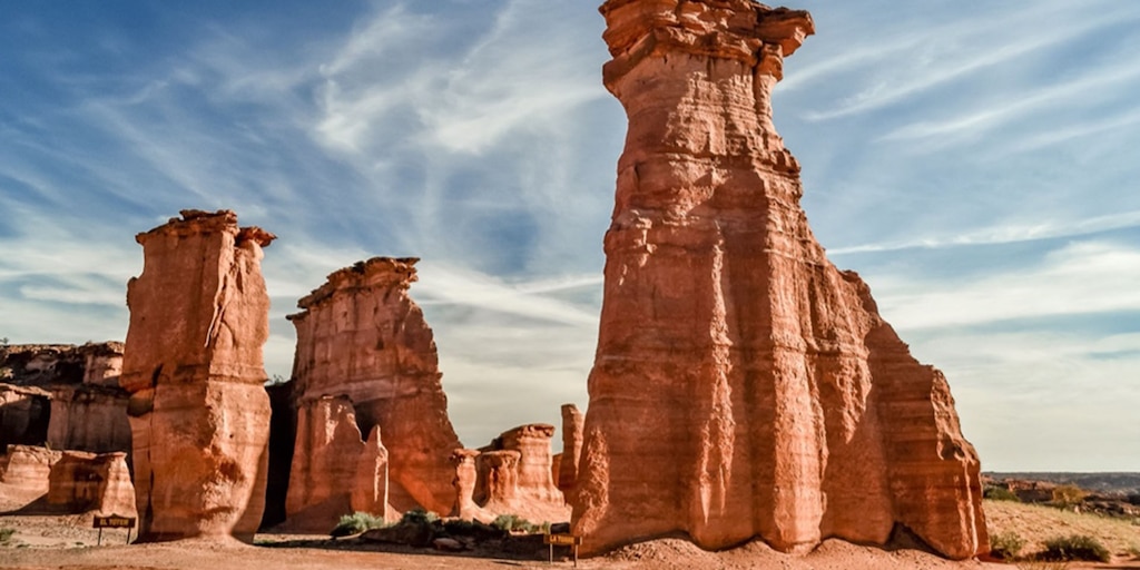 El Parque Nacional Talampaya despliega impresionantes formaciones geológicas y petroglifos antiguos que narran historias milenarias, atrayendo a aventureros de todo el mundo